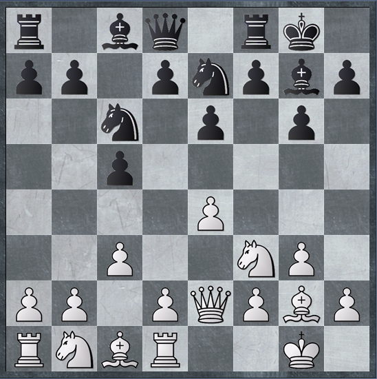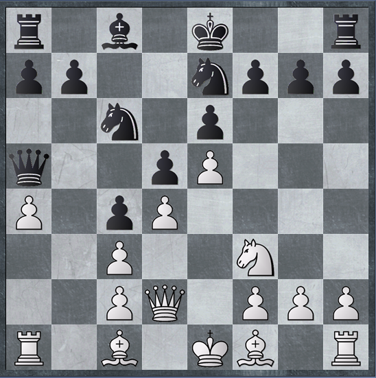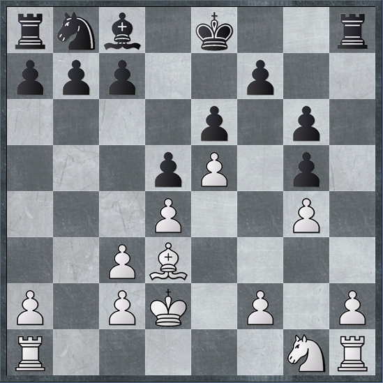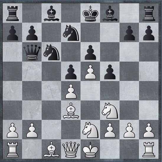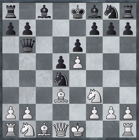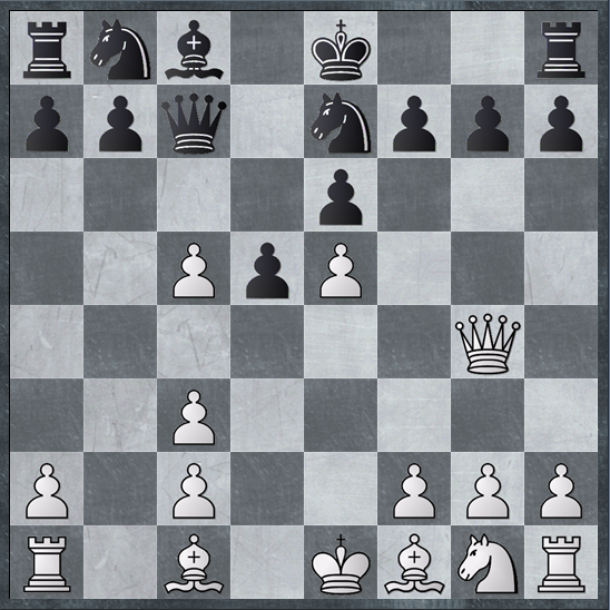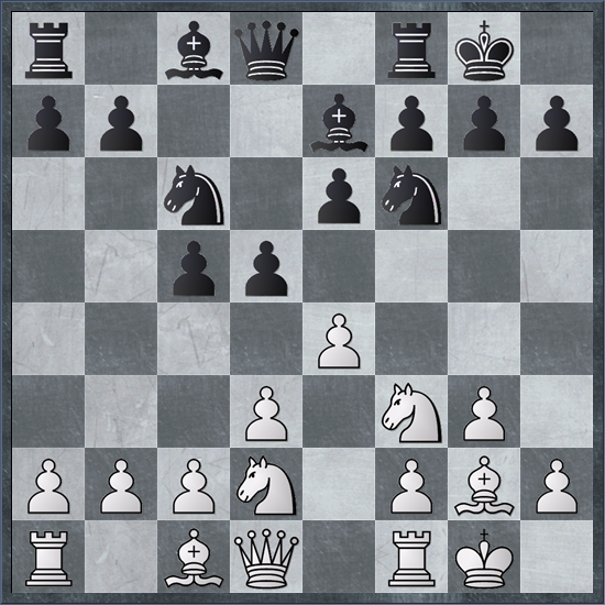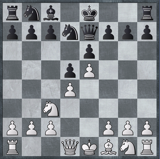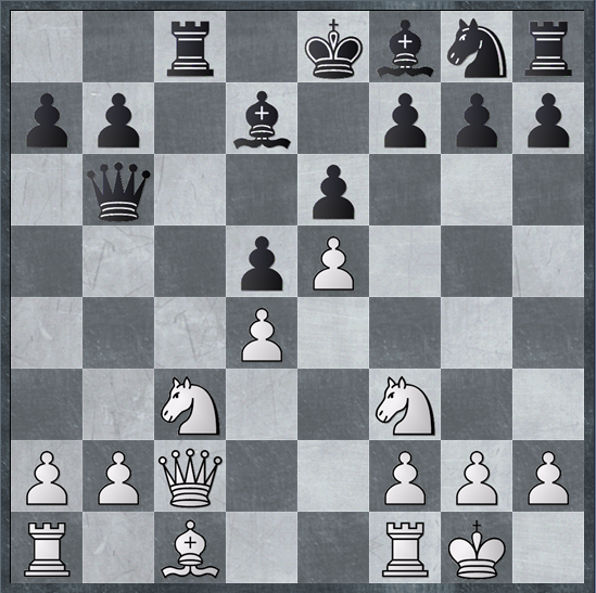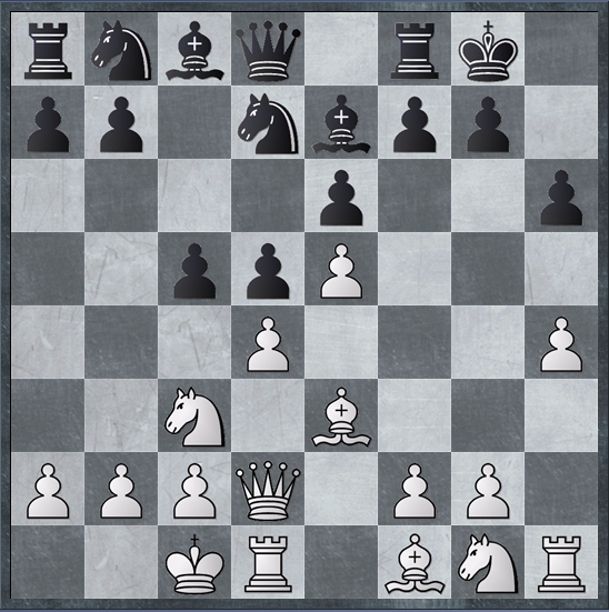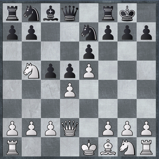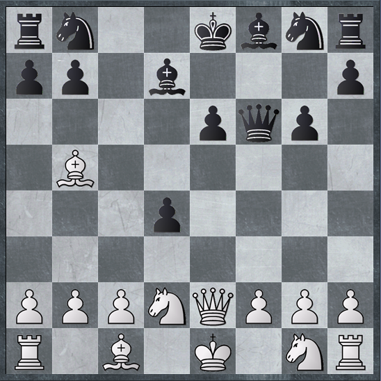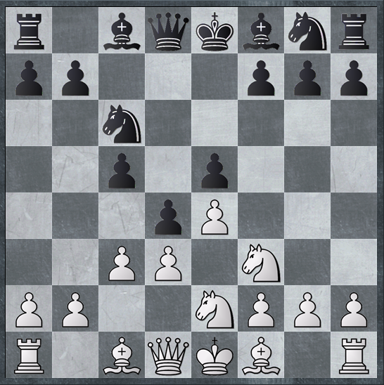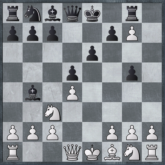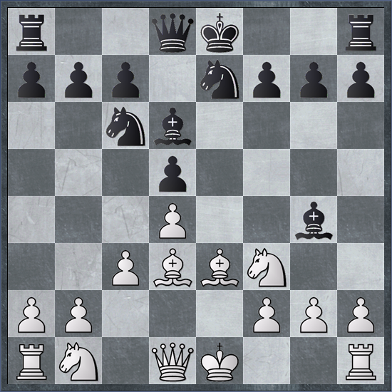اسب خانه f6 را در اختیار ندارد و فیل نیز نمیتواند در قطر c8-h3 مستقر شود.علاوه بر آن ، سفید از برتری فضای فاحشی برخوردار است. سیاه تنها یک امید برای ادامه بازی دارد، شکافت مرکز.