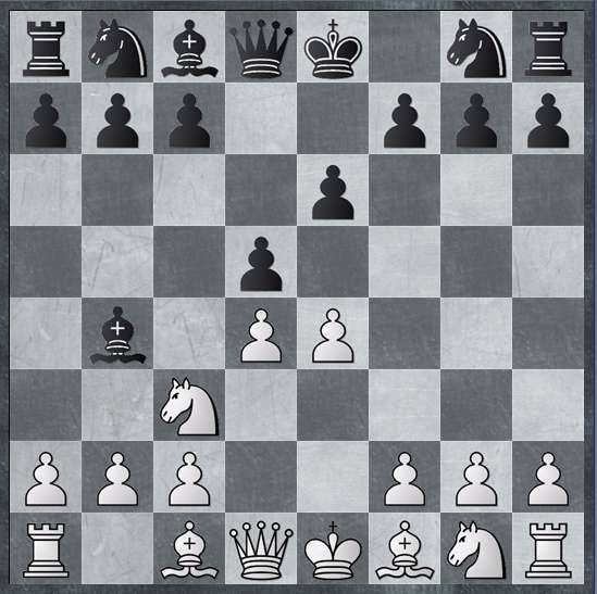 با این حرکت، سفید یک کمربند مرکزی d4 , e5 تشکیل داده است که گسترش سوار های سیاه را با مشکل روبرو می کند: