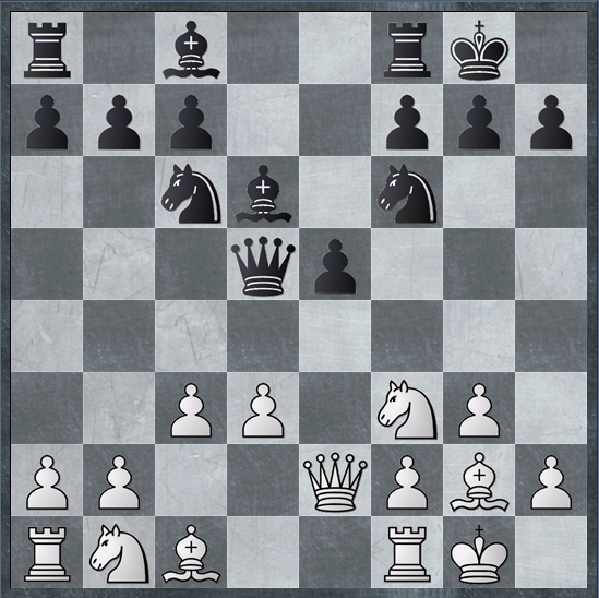 سفید نمی تواند با dxc5 جواب بدهد، زیرا حرکت !Qc7 خیلی زورمند است.حالا نکته اینجاست که سفید نمی تواند قلعه برود، زیرا !Nf5 ، یک پیاده میگیرد.