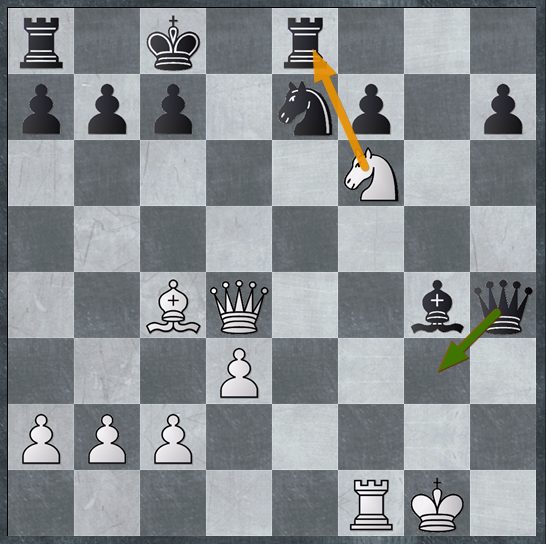 وضعیت سیاه ناگهان منفجر میشود.فیل سیاه در g4 آچمز است و گرفتن این فیل با پیاده، با کیش در d7 میبازد.