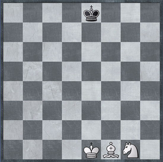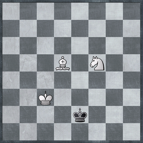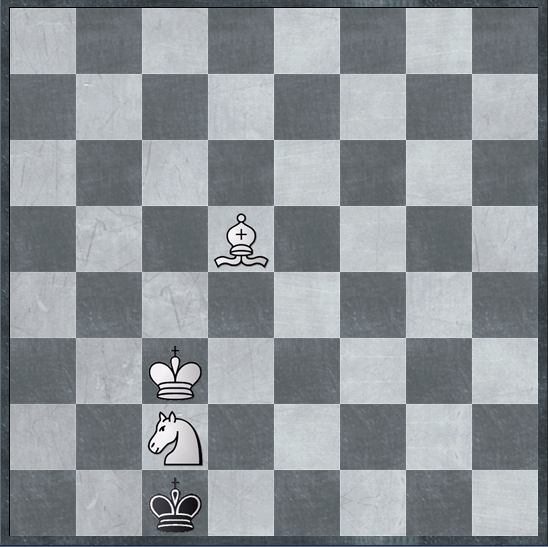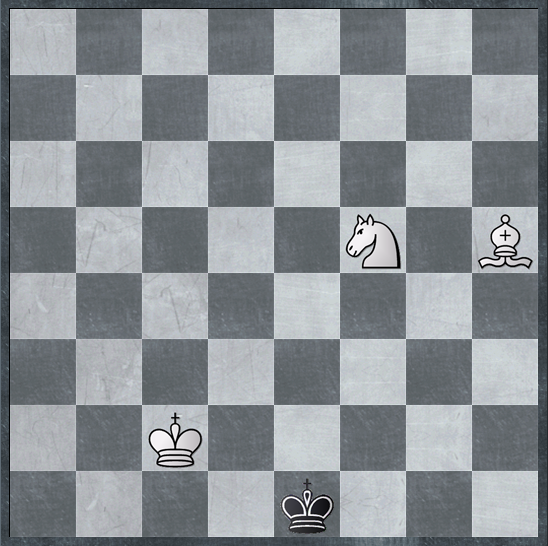 در اینجا می خواهم یک مات دشوار و سخت را توضیح دهم که همان مات فیل و اسب در برابر شاه تنها است. برای این کار باید چند چیز را مد نظر قرار گیرد: